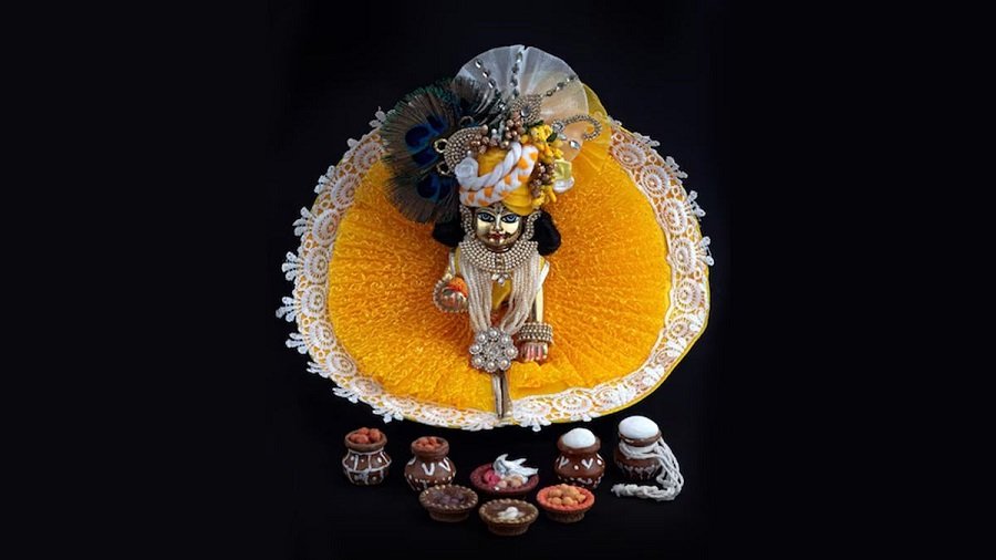 लड्डू गोपाल के लिए एक नरम और सुंदर सोने का स्थान बनाएँ।