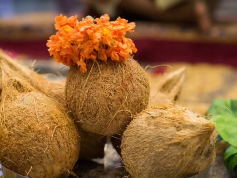 नारियल को देवताओं को अर्पित किए जाने वाले सबसे प्रिय भोगों में से एक माना जाता है। इसका जल और फल पवित्र माने जाते हैं और पवित्रता, समृद्धि और सकारात्मकता के प्रतीक हैं।
