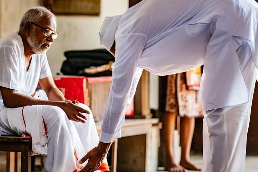 दामाद को अपने ससुर के पैर नहीं छूने चाहिए, और इसी तरह, चाचा को अपने भतीजे या भतीजी के पैर नहीं छूने चाहिए।